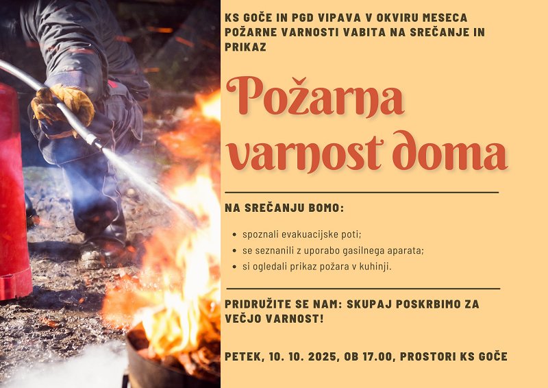 KS GOČE IN PGD VIPAVA V OKVIRU MESECA POŽARNE VARNOSTI VABITA NA SREČANJE IN PRIKAZ