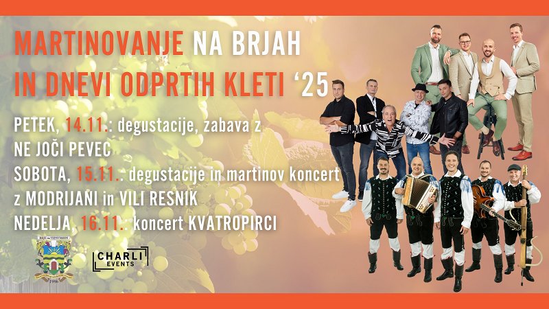 15.30 dalje, info točka na igrišču na Brjah: ponudba domačih martinovih jedi, prodaja degustacijskih kozarcev.