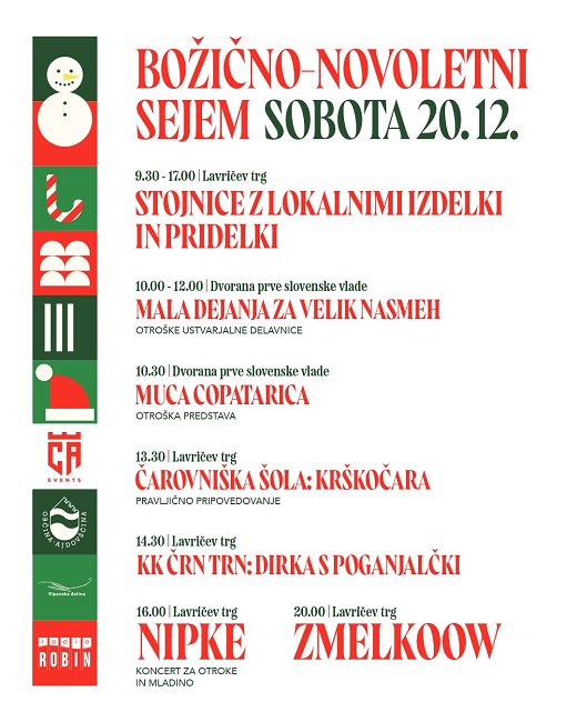 - 9.30 -17.00 Božični sejem (stojnice z lokalnimi izdelki in pridelki)