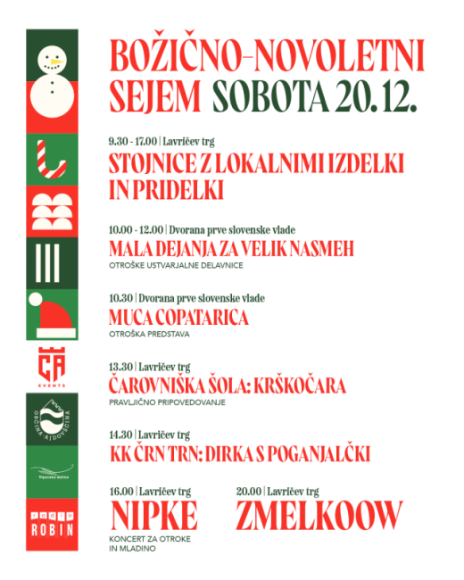 Vabljeni na prijeten božični glasbeni dogodek, kjer boste uživali v prazničnih melodijah in sproščenem decembrskem dogajanju. Za glasbeno popestritev bodo poskrbeli Nipke in Zmelkoow z DJ-jem.