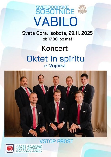 Nazaj na dogodke Zabava Koncert okteta In spiritu Sveta Gora 29.11.2025 17:30 Anžej Gračner: 041 688 454 Vabljeni na koncert okteta In spiritu iz Vojnika. Vstop prost!
