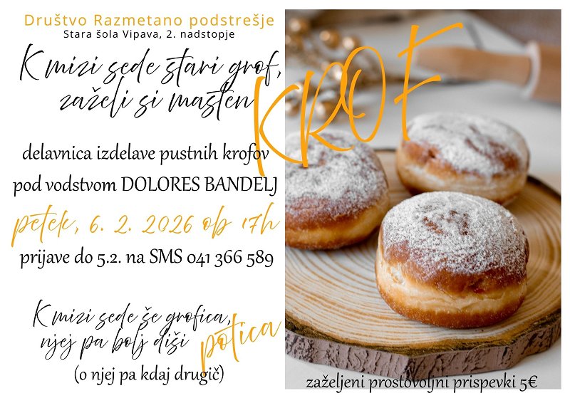 Te skrbi, da jih ne znaš pripraviti? Ne skrbi, pridi na delavnico izdelave PUSTNIH KROFOV in razveseli sebe in bližnje s ta pravimi domačimi KROFI!
