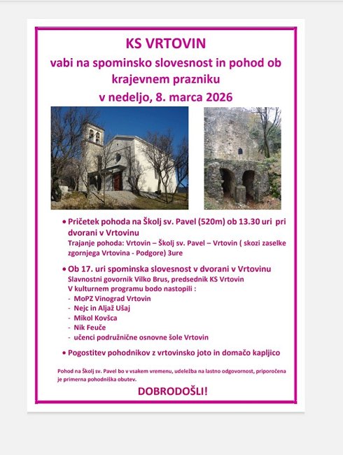 Ob 17.00 spominska slovesnost v dvorani v Vrtovinu
