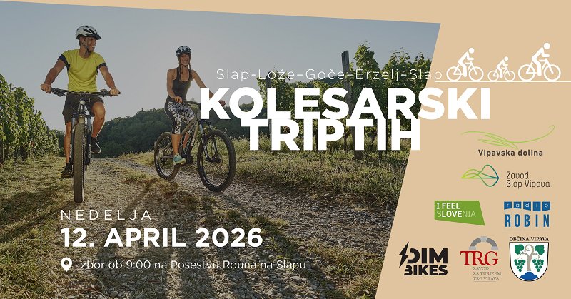 Kolesarski triptih bo potekal s startom ob 9.00 na Rouni pod vasjo Slap. Parkiranje bo zagotovljeno na območju kampa na Rouni, zaključek vseh aktivnosti pa se bo odvijal na Gmajni na Slapu, kjer bo središče celodnevnega dogajanja.
