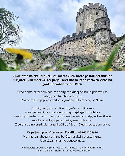 Z udeležbo na čistilni akciji boste postali del skupine “Prijatelji Rihemberka” ter prejeli brezplačno letno karto za vstop na grad Rihemberk v letu 2026.
